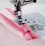 Лапка используется для вшивания молнии. Благодаря своей форме лапка подходит также для пришивания выпушки и планок с кнопочными застежками.