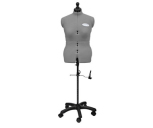 Раздвижной портновский манекен для женской фигуры. Размеры: 58-68. Благодаря раздвижному механизму портновские манекены для шитья соответствуют объёмам нестандартных фигур и позволяют с высокой точностью осуществлять примерку и вносить необходимые поправки в изготавливаемую одежду. Манекен выполнен в сером цвете и в комплектации имеет подставку на роликах и приспособление для маркировки низа изделия.